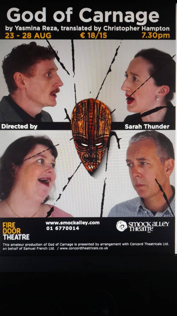 In some welcome news I have acquired tickets to see another show in Smock Alley Theatre. I will be going to the Firedoor Theatre production of ‘God of carnage’ by Yasmina Reza in Smock Alley Theatre which is running from August 23rd to 28th.