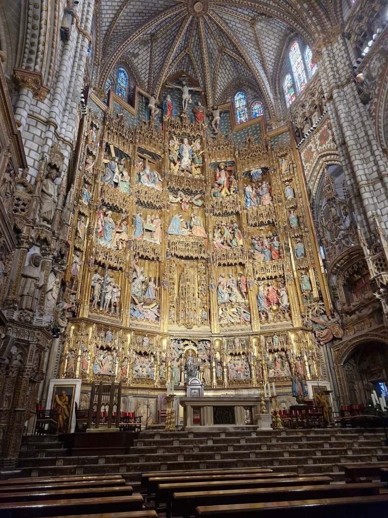 On Friday I had arranged a free walking tour of the medieval city of Toledo. Today was a solo day. We’d walked twenty kilometres the previous day and only I was foolhardy enough to continue. Located about eighty kilometres south of Madrid, Toledo had once been the capital of Spain – divided into Muslim, Christian and Jewish districts. My tour was meeting at 1pm so I left the apartment at 10am thinking I’d have loads of time. I dawdled to the Atocha train station – the largest in Madrid – whereupon I realised that all trains to Toledo were sold out. I asked the woman at the information desk, and she told me that I’d need to go to another station – on the Plaza Eliptica to take a bus. Upon arrival I saw a queue about 100 metres long. This was the queue to buy a bus ticket. It moved at a brisk pace and after twenty minutes I had a ticket acquired. The I joined an equally long queue to board a bus. Thankfully this was an equally fast-moving queue and we departed at 12.15. This was too late to join the walking tour. Never fear – I’d figure it out. Eighteen years ago, I had planned a visit to Toledo. My misspent youth of debauchery and carousing meant however that I’d not gone to bed until 4am the night before and my vile hangover the next day prevented travel. Not this time. I was ready.